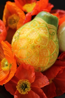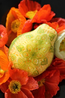 皮の緑を活かして表と裏に 別デザインを彫ってみました。