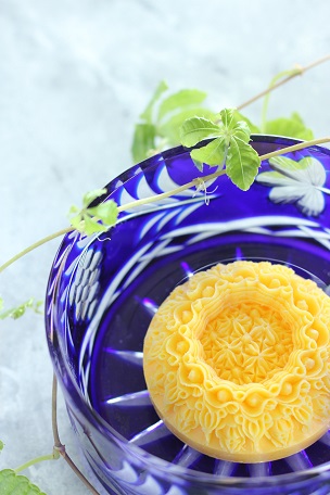 幸せの黄色い石鹸で彫り上げました。