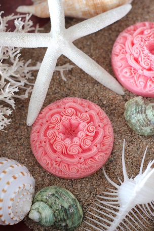 波や珊瑚、貝がらを1つの石鹸の中に盛り込みました。