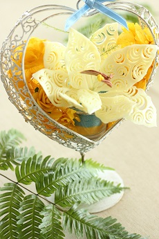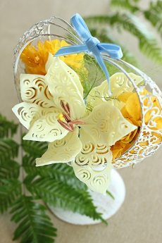 大輪のユリの花びらへ透かし模様を彫ってみました。